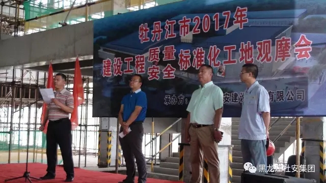 2017年7月14日上午九點(diǎn),由市建設局組織的“牡丹江市質(zhì)量、安全標準化現場(chǎng)觀(guān)摩交流會(huì )” 在我公司承建的恒豐紙業(yè)職工文化活動(dòng)中心項目施工現場(chǎng)隆重召開(kāi)。我市及所轄外市縣安全監察站、工程質(zhì)量監督、房地產(chǎn)開(kāi)發(fā)企業(yè)、監理單位、施工單位及牡市內在建項目的管理人員,共計四百多人參加了此次觀(guān)摩會(huì )。