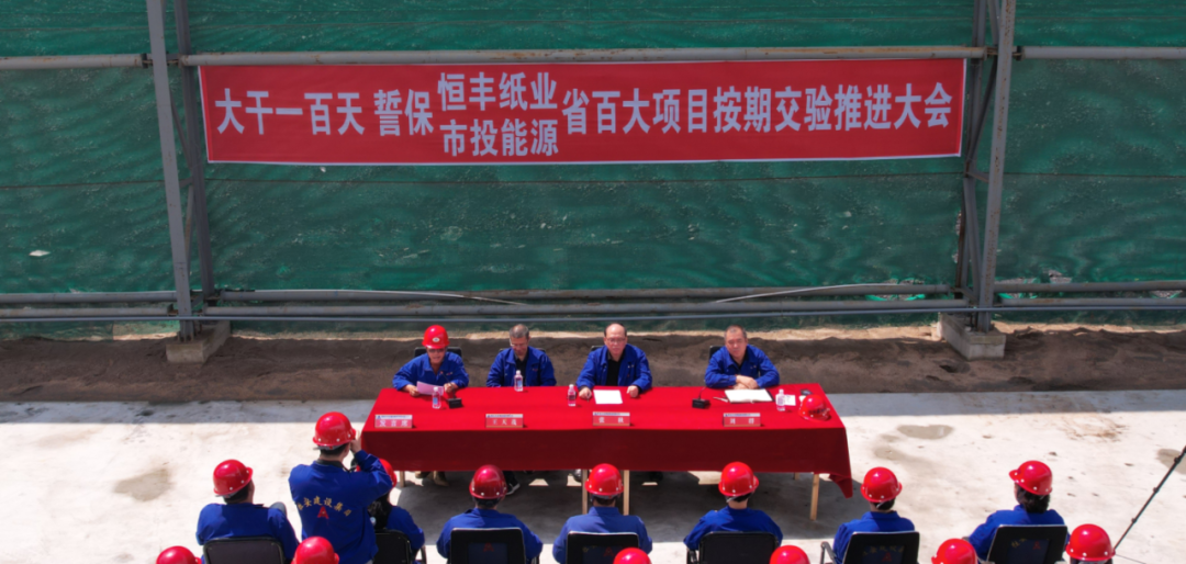 此次參加“會(huì )戰”的兩個(gè)項目(恒豐紙業(yè)/市投能源)負責人曹福昌、李宜永及勞務(wù)隊伍負責人李大山,在會(huì )上作表態(tài)發(fā)言。