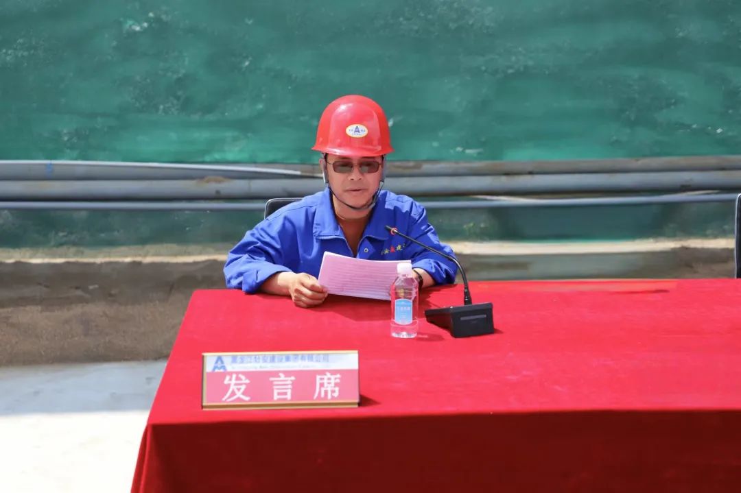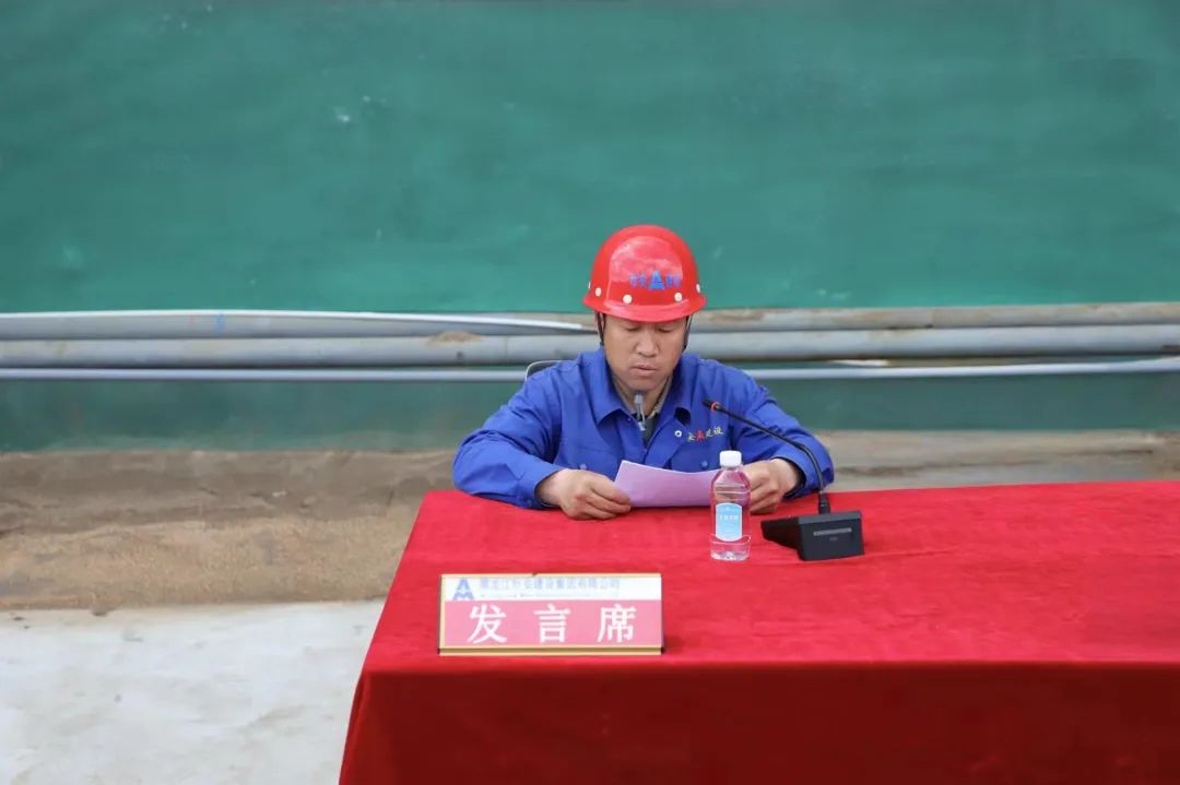 副總經(jīng)理王天茂宣讀了以“保安全、提質(zhì)量、促進(jìn)度”施工生產(chǎn)為主題的“百日施工會(huì )戰”活動(dòng)方案。通過(guò)質(zhì)量、進(jìn)度、安全宣傳四方面綜合評分進(jìn)行評比獎罰。
