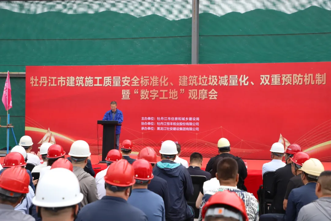 6月21日,由市住房和城鄉建設局主辦,黑龍江牡安建設集團承辦的“牡丹江市建筑施工質(zhì)量安全標準化、建筑垃圾減量化、雙重預防機制暨數字工地觀(guān)摩會(huì )”在牡安集團承建的恒豐紙業(yè)項目隆重舉行。市住建局副局長(cháng)畢傳鵬、市工程質(zhì)量技術(shù)服務(wù)中心主任孫勇、黑龍江牡安建設集團董事長(cháng)、總經(jīng)理張秋以及市住建局、各縣(市)、開(kāi)發(fā)區住建局、質(zhì)量安全中心(站)的有關(guān)領(lǐng)導、市區在建項目的各位同仁參加了本次活動(dòng)。